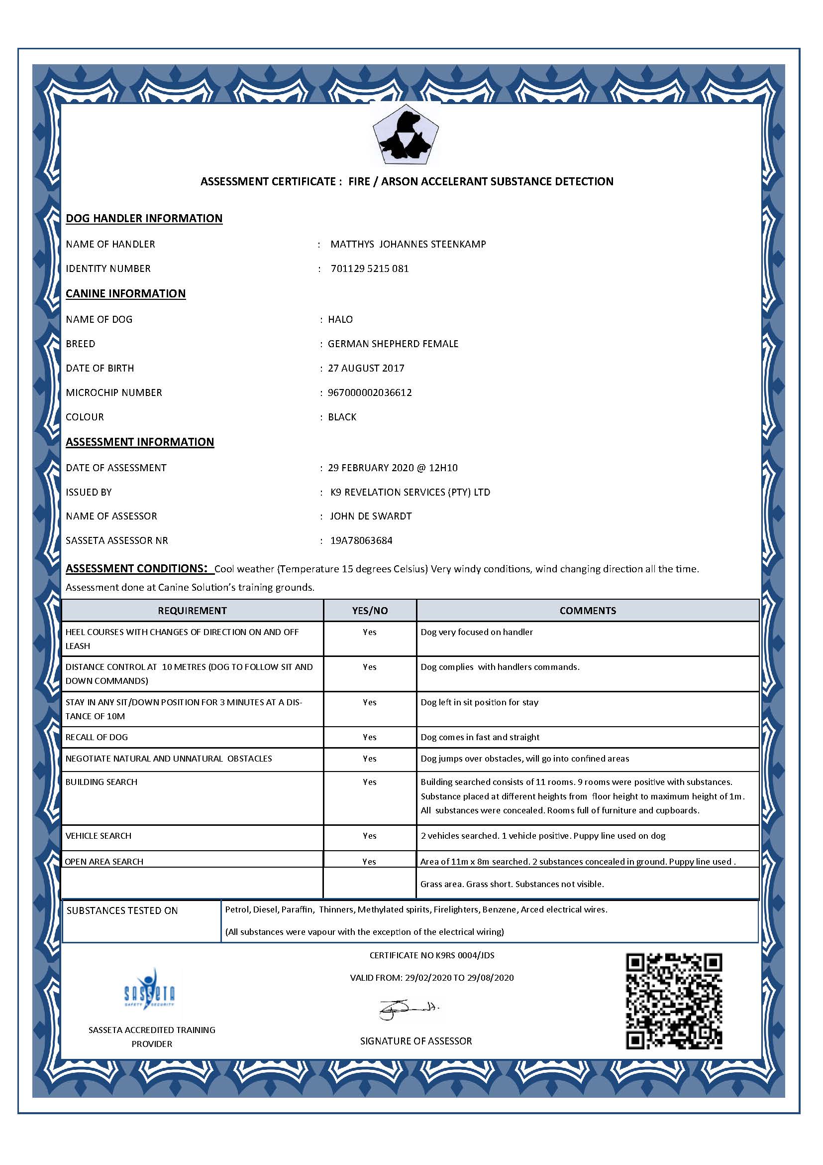 All training of dogs and handlers are done by the Accredited Company Canine Solutions South Africa